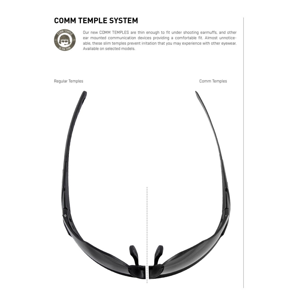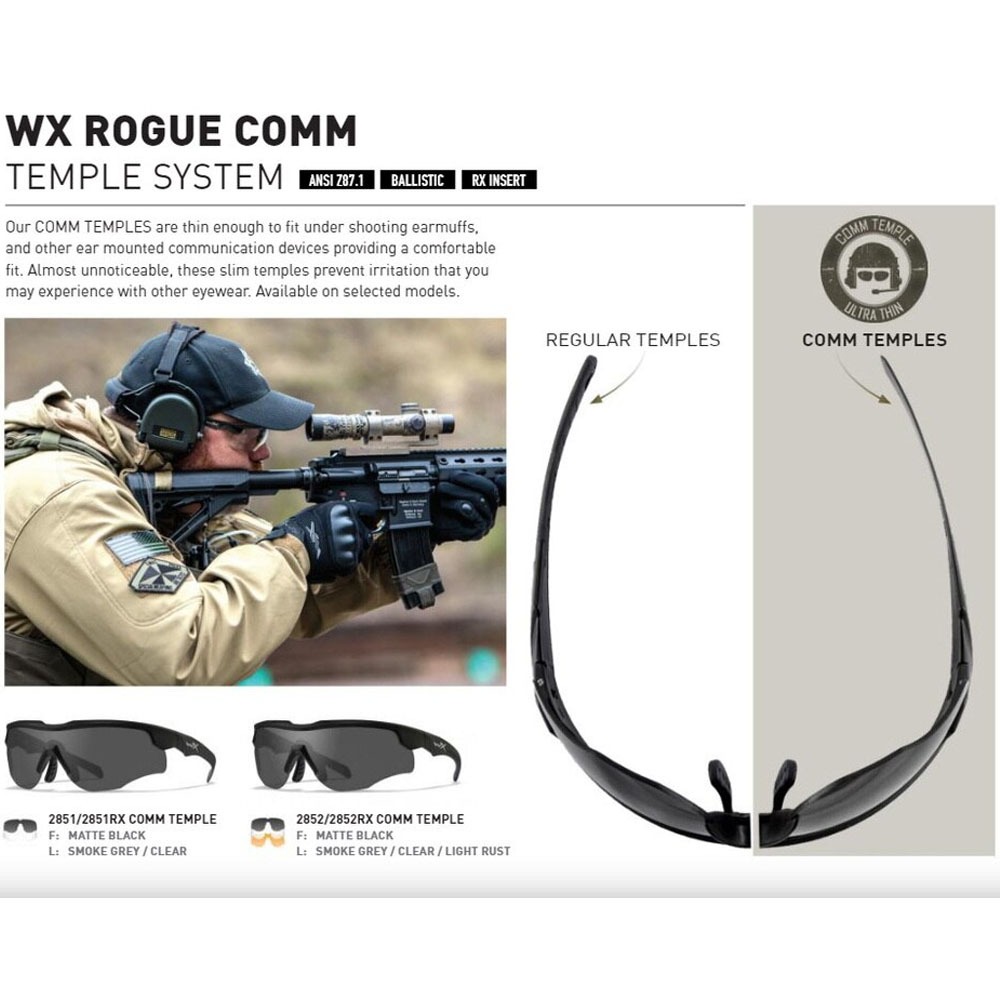 The Rogue COMM frame has the specially designed temple system which means the arm is thinner making it ideal to fit under a communication headset.